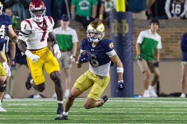 The Notre Dame Fighting Irish are 5-2 this season after they defeated USC by a score of 34-24 in their last game. Notre Dame led 14-13 at halftime, but trailed 24-21 in the third quarter, before scoring 13 straight points for the win. The Fighting Irish out gained USC by a total of 442-396, went 3-11 on third downs, and won the turnover battle by a total of 3-1 in the game. CJ Carr went 16-26 for 136 yards, one touchdown, and one interception, while Jeremiyah Love rushed 24 times for 228 yards and one score. Jordan Faison led the receivers with six receptions for 60 yards in the win. The ND defense recorded two sacks and six tackles for loss in the game.Â