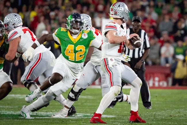 Offensively, Oregon averages 42.2 points per game, ranking 9th in the nation, while defensively, they allow 15.2 points per game, which is 14th. Oregon averages 464.3 total yards per game (251.3 passing and 213.0 rushing), while allowing 252.8 total yards per game (114.2 rushing and 138.7 passing).