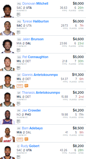 Here is our NBA FanDuel “Main Slate” Lineup for today: