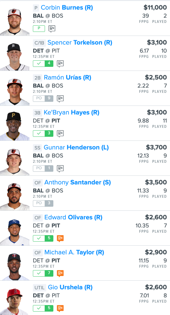 Here is our MLB “Early Only” FanDuel Lineup for this afternoon: