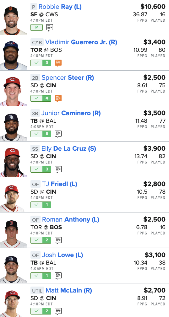 Here is our MLB “Main Slate” FanDuel Lineup for this afternoon: