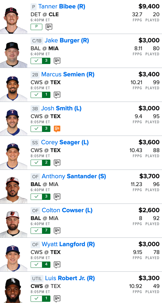 Here is our MLB “Main Slate” FanDuel Lineup for tonight: