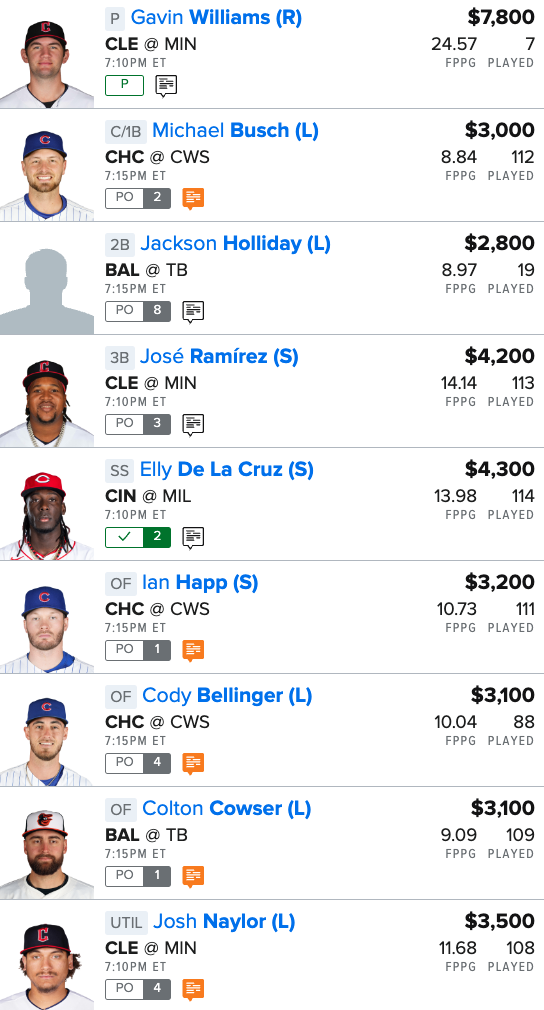 Here is our MLB “Main Slate” FanDuel Lineup for tonight: