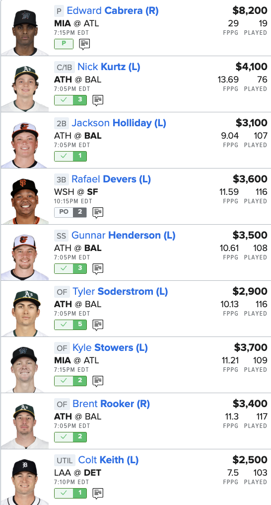 Here is our MLB “Main Slate” FanDuel Lineup for tonight: