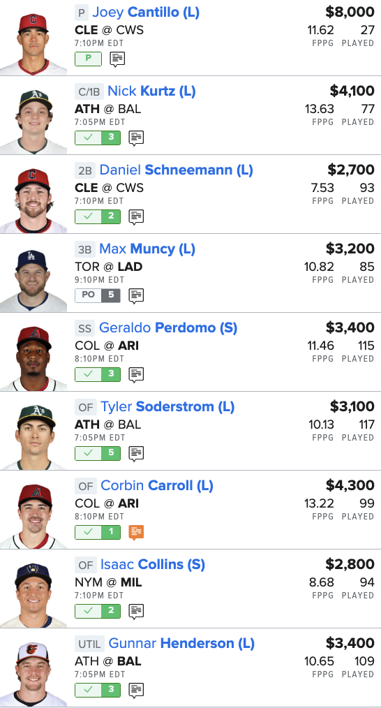 Here is our MLB “Main Slate” FanDuel Lineup for tonight: