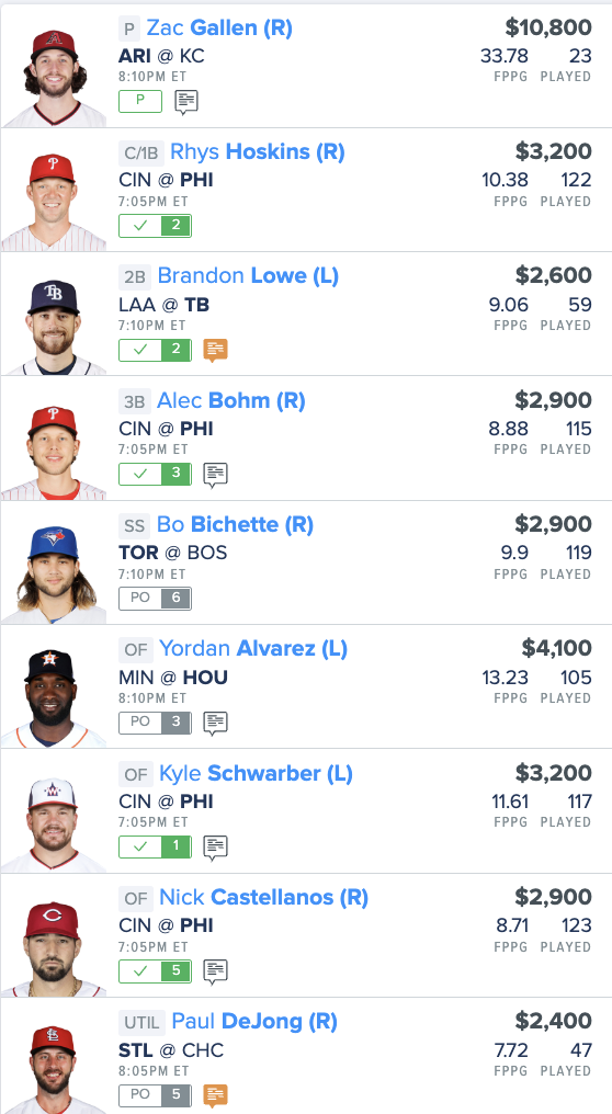 Here is our MLB FanDuel “Main Slate” Lineup for today: