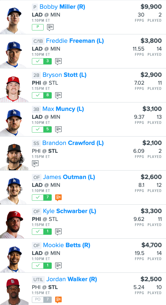 Here is our MLB “Very Early Only” FanDuel Lineup for this afternoon: