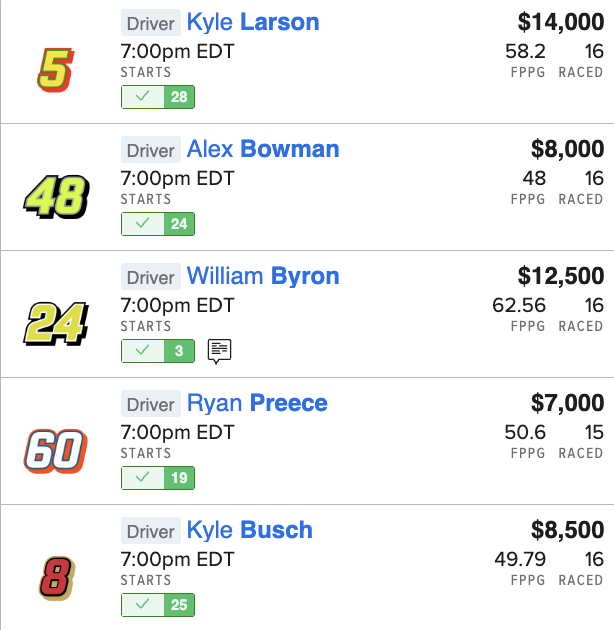 Here is our NASCAR FanDuel lineup for the Cracker Barrel 400: