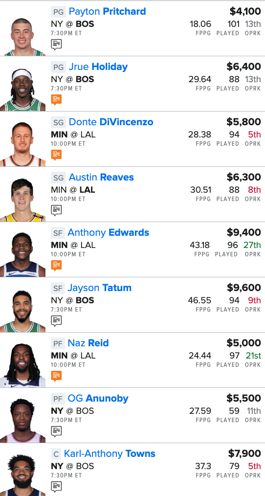 Here is our NBA “Main Slate” FanDuel Lineup for tonight: