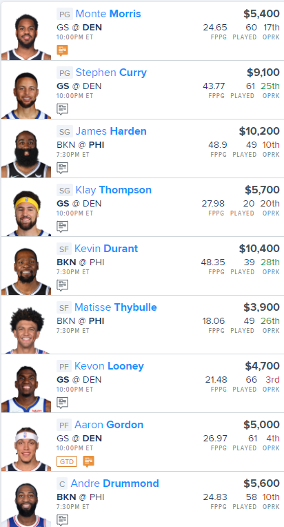 Here is our NBA FanDuel “Main Slate” Lineup for today: