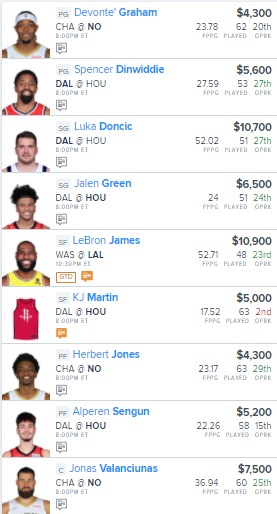 Here is our NBA FanDuel “Main Slate” Lineup for today: