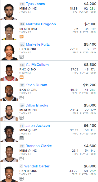 Here is our NBA FanDuel “Main Slate” Lineup for today: