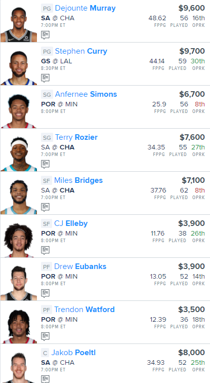 Here is our NBA FanDuel “Main Slate” Lineup for today: