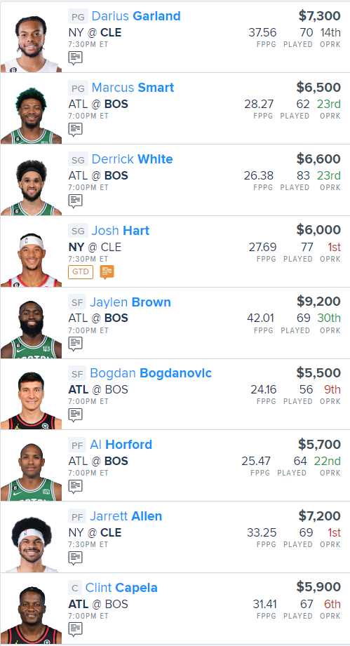 Here is our NBA “Main Slate” FanDuel Lineup for tonight:
