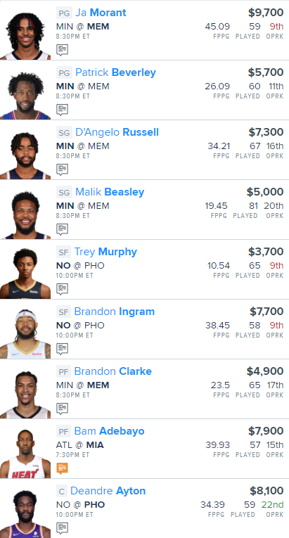 Here is our NBA FanDuel “Main Slate” Lineup for today: