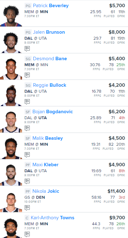 Here is our NBA FanDuel “Main Slate” Lineup for today: