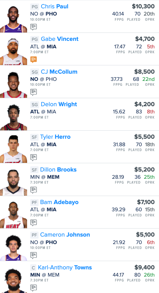 Here is our NBA FanDuel “Main Slate” Lineup for today:
