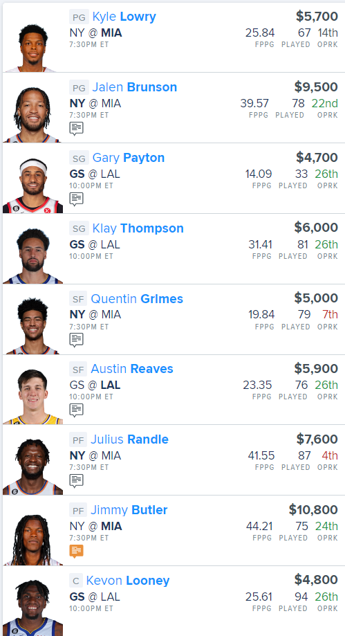 Here is our NBA “Main Slate” FanDuel Lineup for tonight: