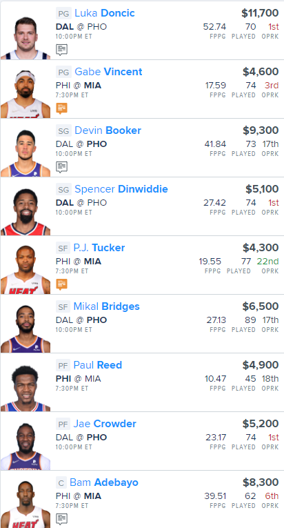 Here is our NBA FanDuel “Main Slate” Lineup for today: