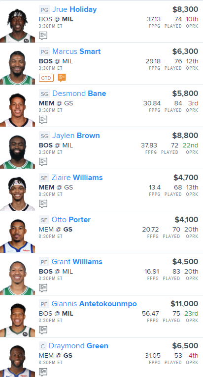 Here is our NBA FanDuel “Main Slate” Lineup for today: