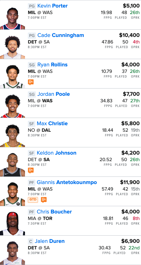 Here is our NBA “Main Slate” FanDuel Lineup for tonight: