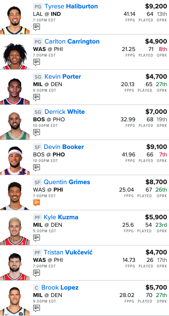 Here is our NBA “Main Slate” FanDuel Lineup for tonight: