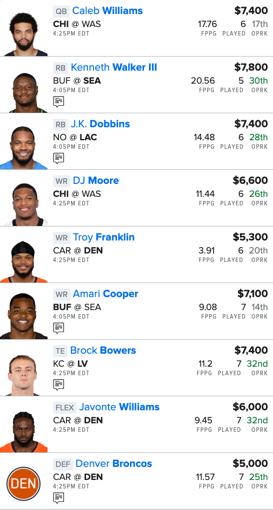 Here is our NFL “Afternoon Only” FanDuel Lineup for today:
