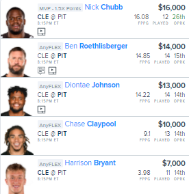 We have some NFL Monday Night Football tonight as we have a great matchup with the Cleveland Browns taking on the Pittsburgh Steelers! Let’s take a look at our FanDuel “Single Game Showdown” for tonight that starts at 8:15pm (EST)!