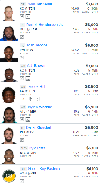 NFL DFS FanDuel Main Slate Lineup, Daily Fantasy Football Picks for 10/24/21