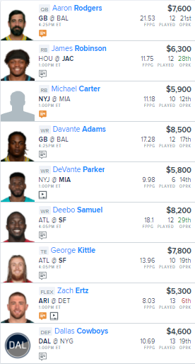 Here is our NFL FanDuel “Main Slate” Lineup for this afternoon: