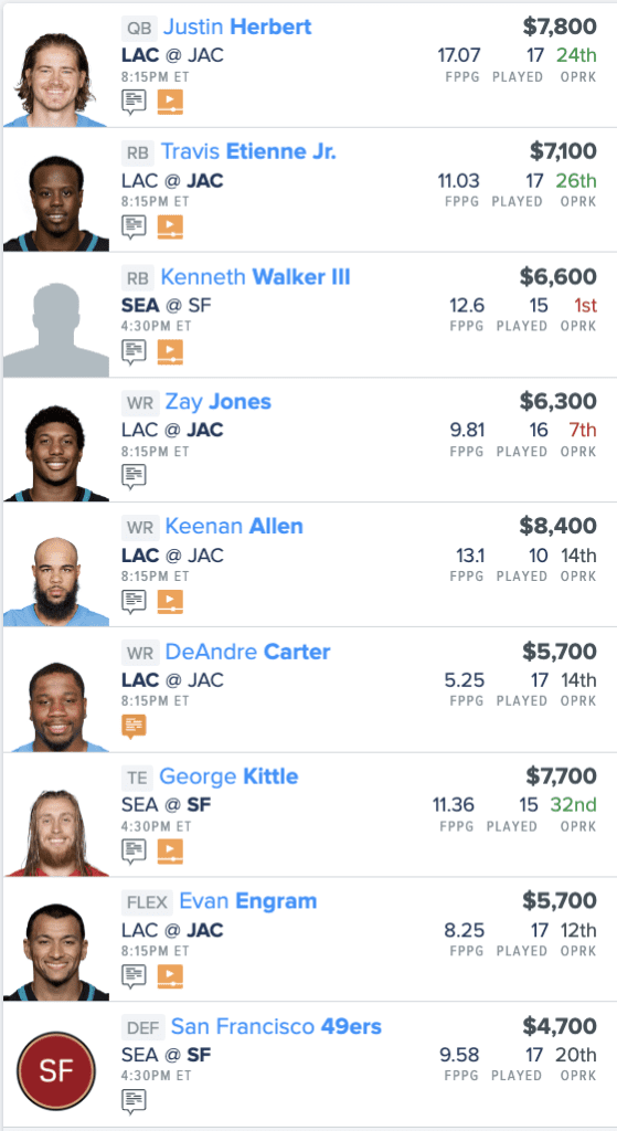 Here is our NFL FanDuel “Main Slate” Lineup for today: