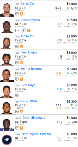 The NFL Playoffs start this Saturday and we have two great games today with the Las Vegas Raiders vs. Cincinnati Bengals & New England Patriots vs. Buffalo Bills! Let’s check out our NFL DFS “Saturday Only” FanDuel lineup that starts at 4:30pm (EST)!