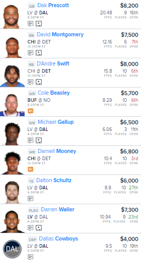 Here is our NFL FanDuel “Main Slate” Lineup for this afternoon: