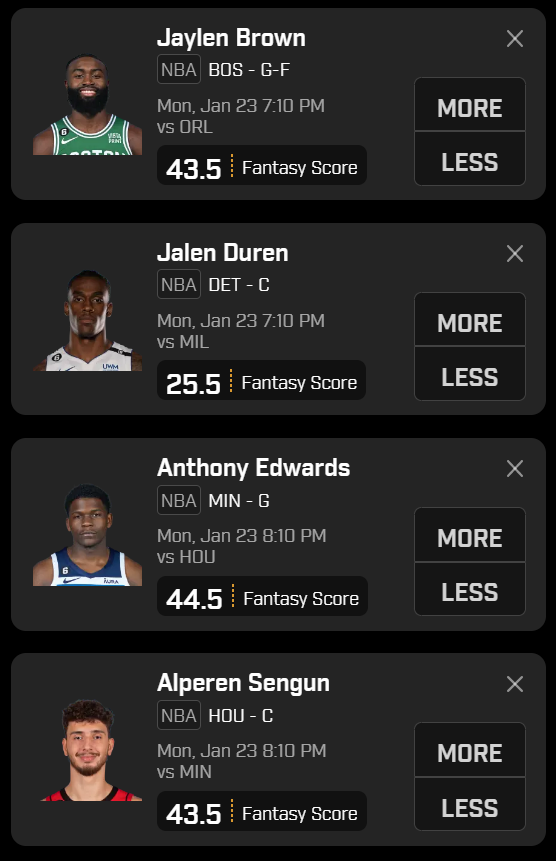 PrizePicks – NBA – 4 Pick POWER Play -1/23/23 – 7:10pm