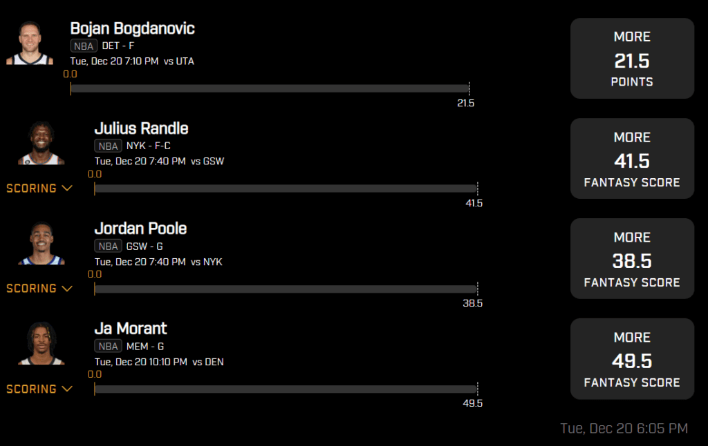 PrizePicks – NBA – 4 Pick POWER Play -12/20/22 – 7:10pm