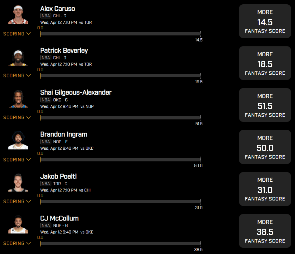PrizePicks – NBA – 6 Pick FLEX Play – 4/12/23 – 7:10pm