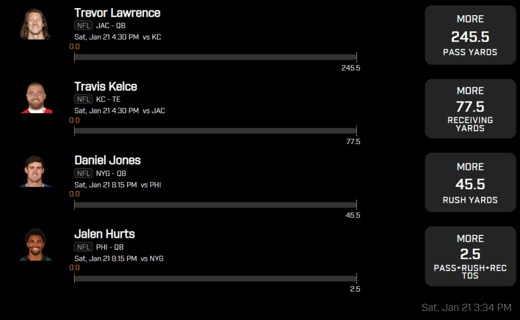 The NFL Playoffs continue tonight as we have a great 2-game Saturday Only slate with Jacksonville vs. Kansas City & New York vs. Philadelphia! Let’s get some PrizePicks action in for the NFL this afternoon as we go with a 4-pick POWER play that starts at 4:30pm!