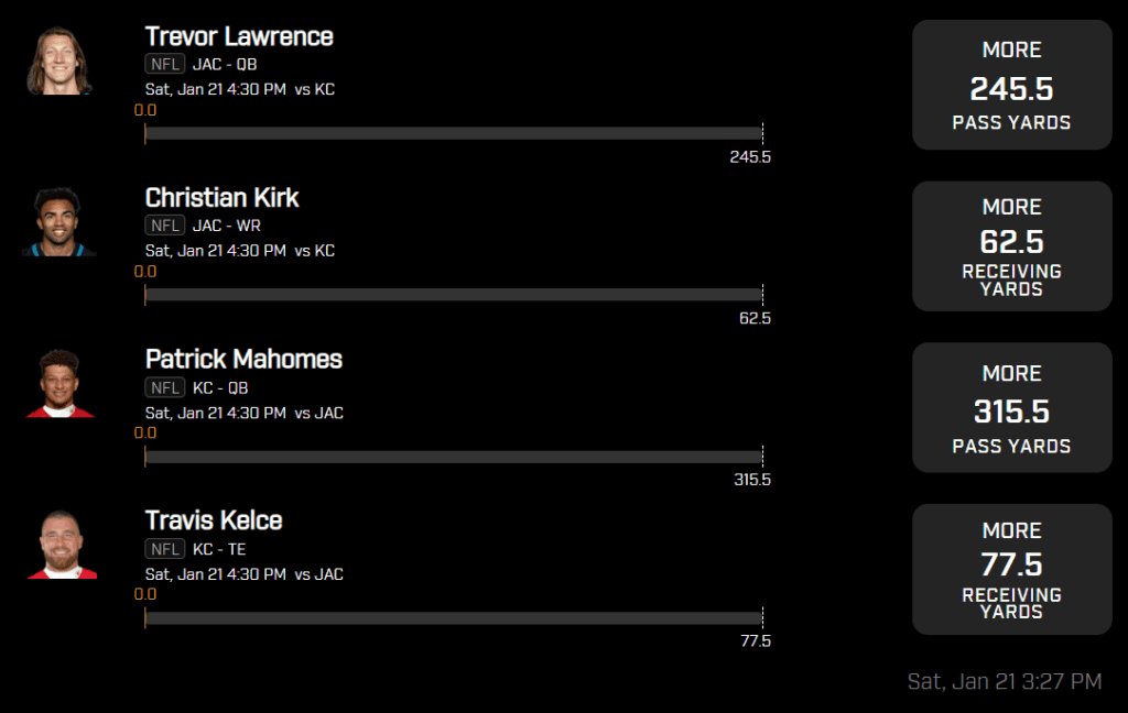 PrizePicks – NFL – 4 Pick POWER Play – JAC at KC – 1/21/23 – 4:30pm