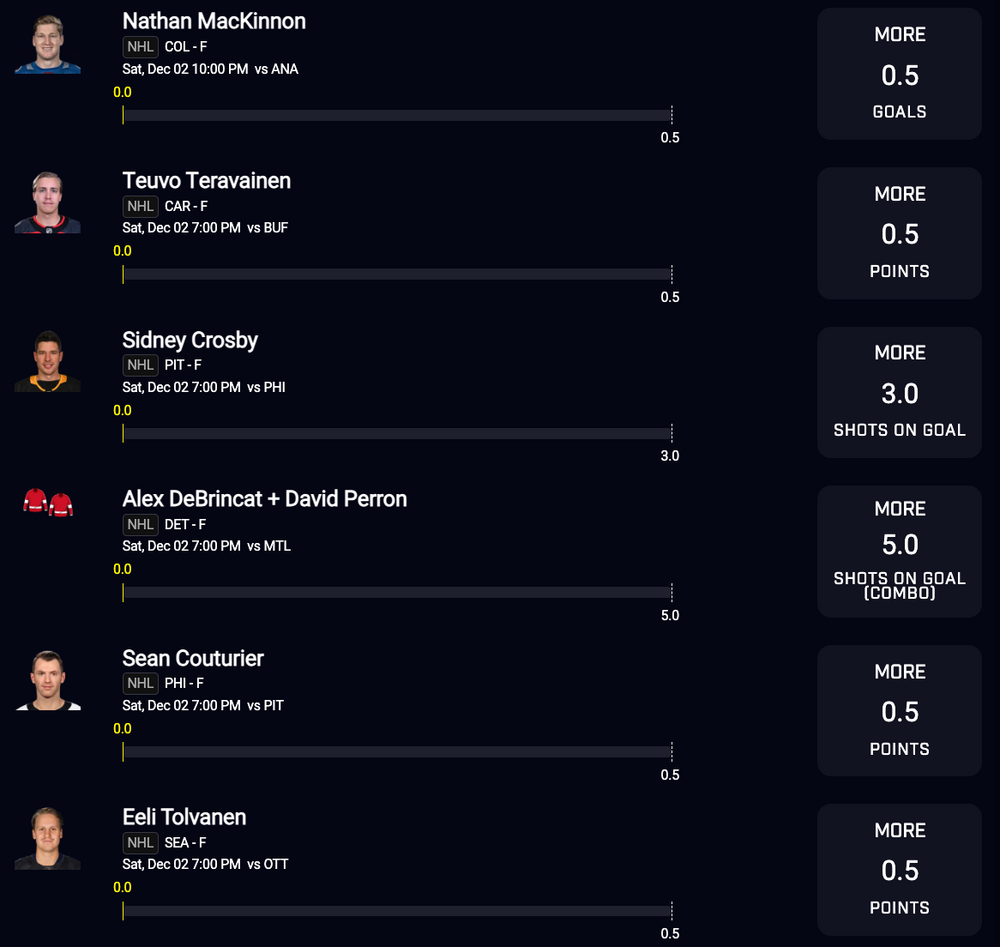 PrizePicks - NHL - 6 Pick FLEX Play - 12-2-23 - 7:00pm