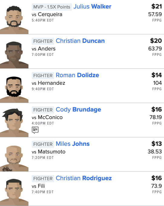 The UFC continues this afternoon and lets get some FanDuel action in as we have UFC Fight Night: Dolidze vs. Hernandez that starts at 4:00pm.