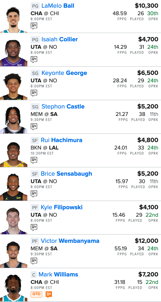 Here is our NBA “Main Slate” FanDuel Lineup for tonight: