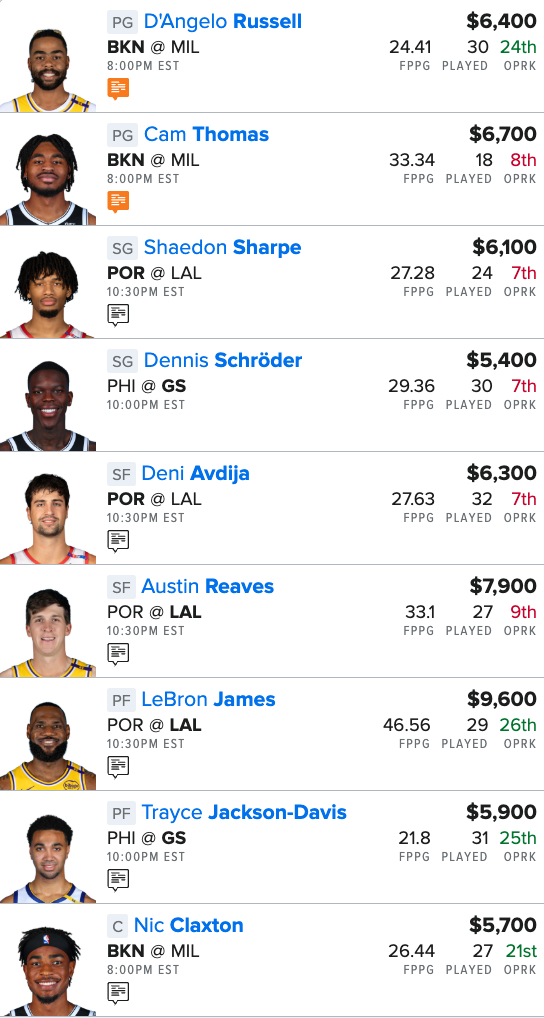 Here is our NBA “Main Slate” FanDuel Lineup for tonight: