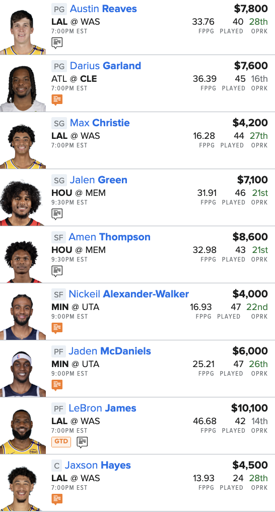 Here is our NBA “Main Slate” FanDuel Lineup for tonight: