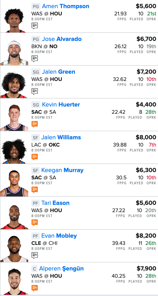 Here is our NBA “Main Slate” FanDuel Lineup for tonight: