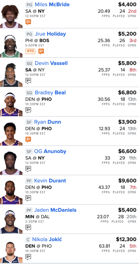 Here is our NBA “Main Slate” FanDuel Lineup for this afternoon: