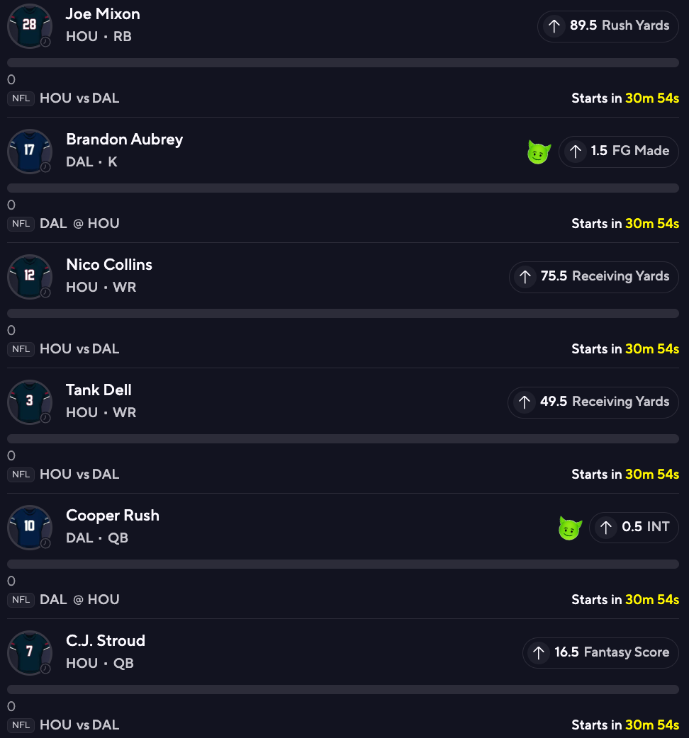 Here is our NFL 6-Pick PrizePicks HOU at DAL Lineup for Monday night: