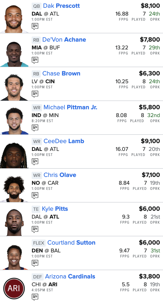 Here is our NFL “Main Slate” FanDuel Lineup for today: