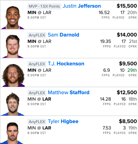 Here is our NFL “MIN @ LAR” Single Game Showdown FanDuel Lineup for this Monday night: