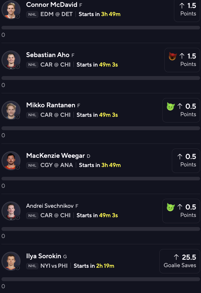 Here is our NHL 6-Pick PrizePicks POWER Play Lineup for tonight: