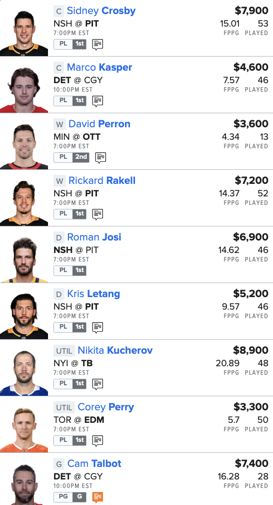Here is our NHL “Main Slate” FanDuel Lineup for tonight: